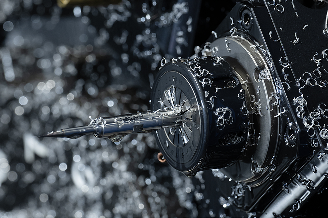 The three-digit code is engraved using an exceptionally fine end mill. This process is carried out with great care and takes approximately three minutes per lens.